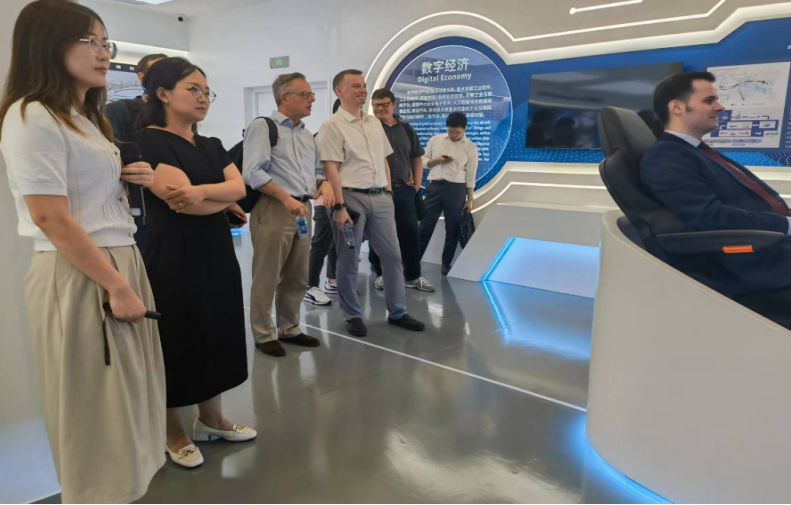 考察過程中來到了順義區(qū)中德產(chǎn)業(yè)園,中德產(chǎn)業(yè)園管委會(huì)負(fù)責(zé)人郝利杰,帶領(lǐng)相關(guān)負(fù)責(zé)人首先參觀了中德產(chǎn)業(yè)園展廳,詳細(xì)介紹了園區(qū)建設(shè)、運(yùn)營、發(fā)展等相關(guān)情況,講解了企業(yè)助力制造業(yè)企業(yè)數(shù)字化轉(zhuǎn)型,共性技術(shù)研發(fā),數(shù)字人才培訓(xùn)等領(lǐng)域的相關(guān)工作。