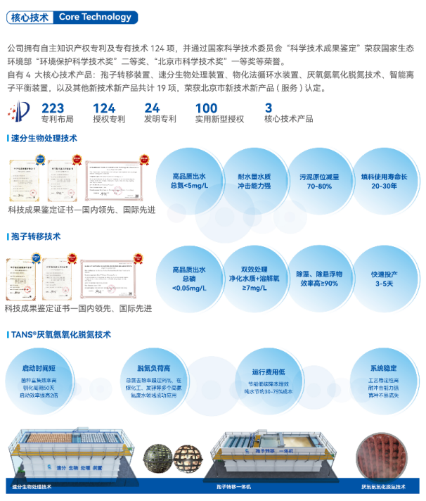 科凈源以系統(tǒng)綜合治理解決方案(“科凈源之法”)為根本,以核心技術(shù)為引擎,推出污水處理、污水深度處理、高濃度有機污水處理、循環(huán)水處理等領(lǐng)域的4大核心技術(shù)(孢子轉(zhuǎn)移技術(shù)、速分生物處理技術(shù)、厭氧氨氧化脫氮技術(shù)、物化法循環(huán)水技術(shù)),先后突破超極限脫氮、超極限除磷、低溫污水生物處理、污泥源頭減量、微污染水生物處理等技術(shù)難題,構(gòu)建起集”咨詢、規(guī)劃、設計、資金、制造、實施、運營”為一體的全生命周期綜合管理服務體系及系統(tǒng)綜合治理解決方案。