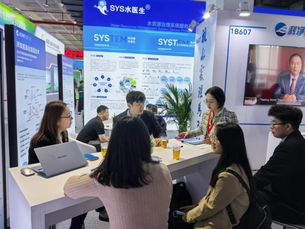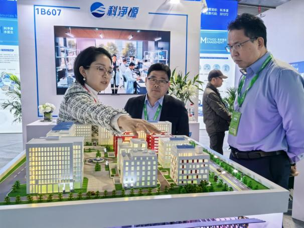 科凈源展位吸引了來自設計院、國內(nèi)外客戶及上下游供應商等紛紛駐足,就技術(shù)難點、治理難題等與科凈源團隊進行深度交流,相互分享流域綜合治理等實踐案例。針對國內(nèi)客戶及“一帶一路”沿線國家的水處理需求,公司提出定制化解決方案。