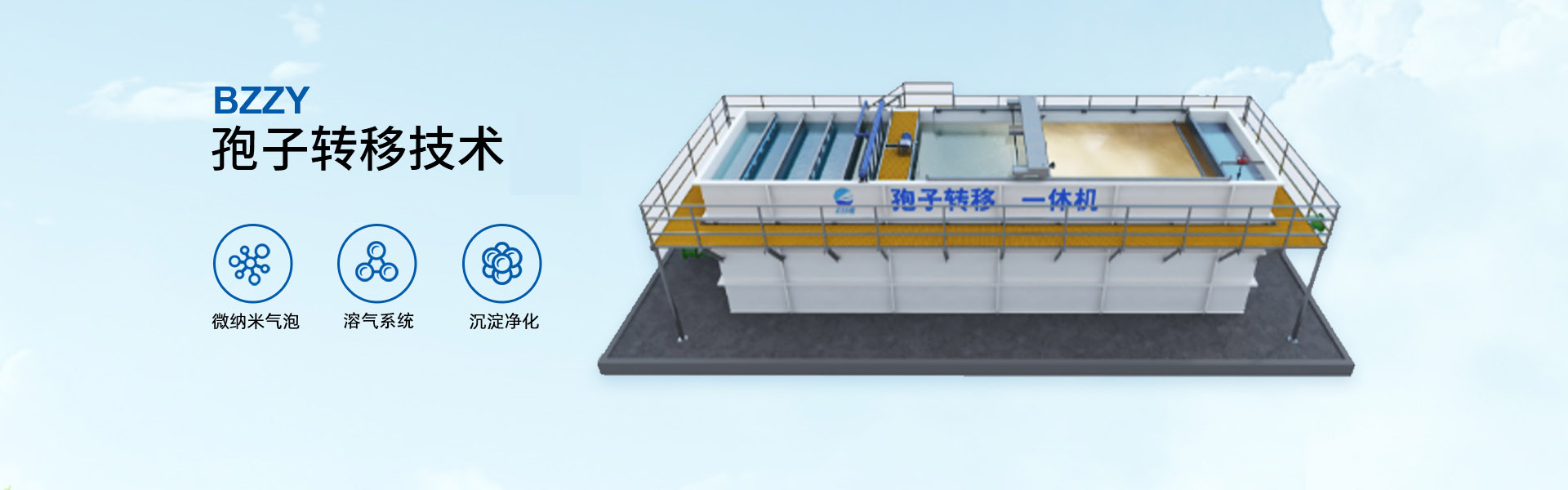 孢子轉(zhuǎn)移系統(tǒng)主要包括設(shè)備主體、孢子發(fā)生系統(tǒng)、加藥系統(tǒng)、浮渣收集及排污系統(tǒng)、沉泥抽吸及排污系統(tǒng)、自控系統(tǒng)等。孢子發(fā)生系統(tǒng)產(chǎn)生的微納米氣泡具有巨大的比表面積,通過(guò)釋放過(guò)程中產(chǎn)生的超強(qiáng)攪拌作用,與進(jìn)水和定制化藥劑在設(shè)備主體中發(fā)生反應(yīng),形成的浮渣經(jīng)過(guò)刮渣機(jī)刮除,沉泥經(jīng)過(guò)底部吸泥機(jī)清除。通過(guò)物理、化學(xué)等學(xué)科的交叉應(yīng)用,有效去除水中的總磷、懸浮物等污染物,同時(shí)實(shí)現(xiàn)水體復(fù)氧。